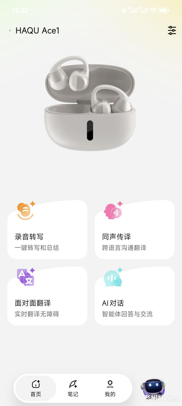 要是说音质是哈趣Ace1的“硬实力”,那么其AI交互功能则是它的“软实力”中枢。这款耳机内置了丰富的智能功能,澈底篡改了传统耳机的使用阵势,插足专属APP和洽耳机后,可以看到有灌音转写、同声传译、面临面翻译、AI对话,底下来体验试试: