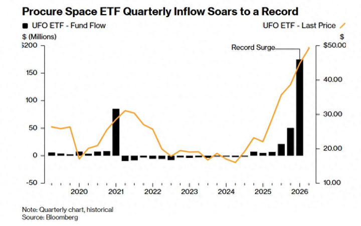 证实机构汇编的一项统计数据,市值约4.15亿好意思元的Procure Space ETF(好意思股市集ETF代码:UFO)在本年第一季度蛊卦了近1.75亿好意思元资金流入,创下其自2019年确立以来的最大范围资金流入记录。跟着投资者们寻找切入SpaceX——这家从事天际探索、卫星通讯和前沿东谈主工智能技能科技巨头且已成为连年来最受期待的初度公开募股公司的投资路线,这股创记录资金流涌入随之而来。