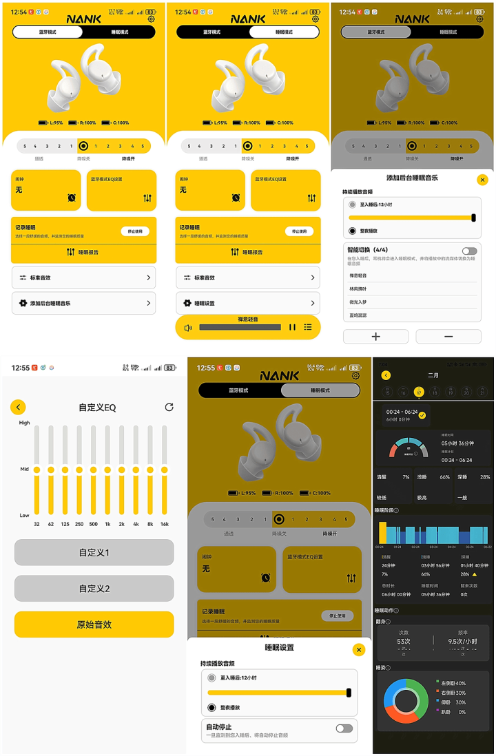 最让我以为贴心的,是它的配套APP。集结APP后,不仅能调治蓝牙花样和就寝花样,还能精确调治降噪深度、切换音效,更强大的是,它能及时监测我的就寝情状,生成驻扎的就寝敷陈,让我明晰地知说念我方的入睡时长、深睡时长和浅睡时长。